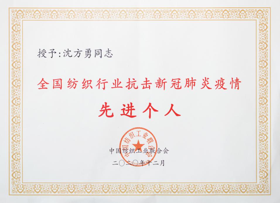 沈方勇董事長(zhǎng)獲評(píng)“全國(guó)紡織行業(yè)抗疫先進(jìn)個(gè)人”