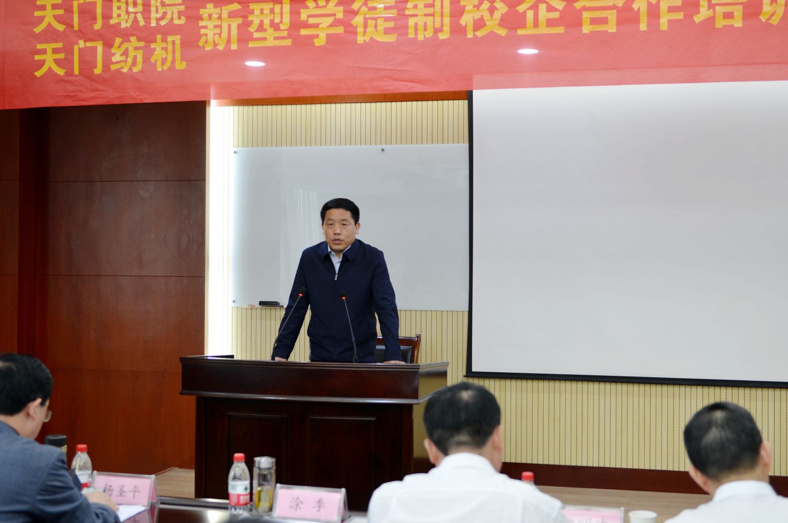 天門紡機(jī)黨委書記魯?shù)挛慕榻B了《天門職院與天門紡機(jī)新型學(xué)徒制培訓(xùn)方案》,天門職業(yè)學(xué)院教師何漢兵作了發(fā)言,他代表全體培訓(xùn)教師表態(tài),一定不負(fù)期望,精心備課,靈活施教,圓滿完成教學(xué)任務(wù)。