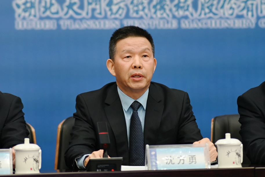 媒體提問結(jié)束后,沈方勇董事長率公司同仁向大力支持召開本次媒體見面會的天門市委宣傳部、融媒體中心及蒞臨會議的各媒體朋友表達(dá)了感激之情,并提前向長期支持關(guān)心天門紡機(jī)發(fā)展的各界同仁和廣大用戶拜年。