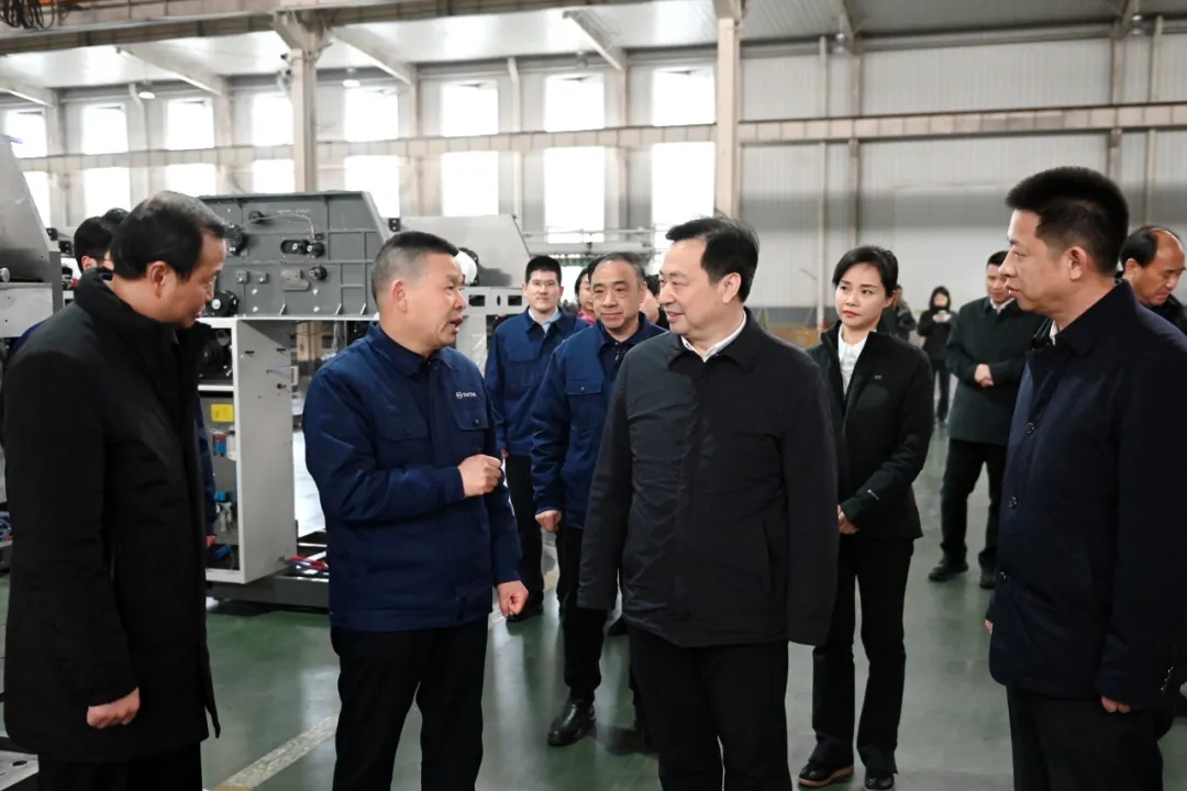 2025年3月4日上午,湖北省經(jīng)信廳黨組書記、廳長汪元程,總工程師盛章學(xué),經(jīng)濟(jì)運(yùn)行處處長王雋,裝備工業(yè)處處長王瓊,原材料工業(yè)處處長鄧忠明,綜合處二級主任科員李雷等一行到天門紡機(jī)調(diào)研。天門市委書記、市人大常委會(huì)主任紀(jì)道清,天門市委副書記、市長肖敏,天門市委常委、副市長曾令慧,天門市委常委、秘書長高文博等市領(lǐng)導(dǎo)及天門市經(jīng)信局黨組書記、局長陳明敏等部門負(fù)責(zé)人全程陪同調(diào)研。
