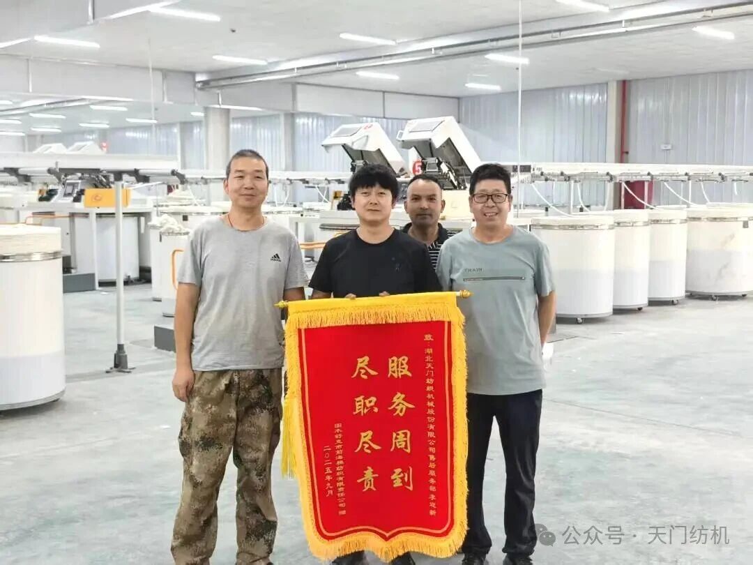 “服務(wù)周到,盡職盡責(zé)”,這是天門紡機新疆客戶圖木舒克市前海棉紡織有限責(zé)任公司送給90后售后服務(wù)工程師李迎新的錦旗贈言。短短八個字,既是肯定,又是褒揚。