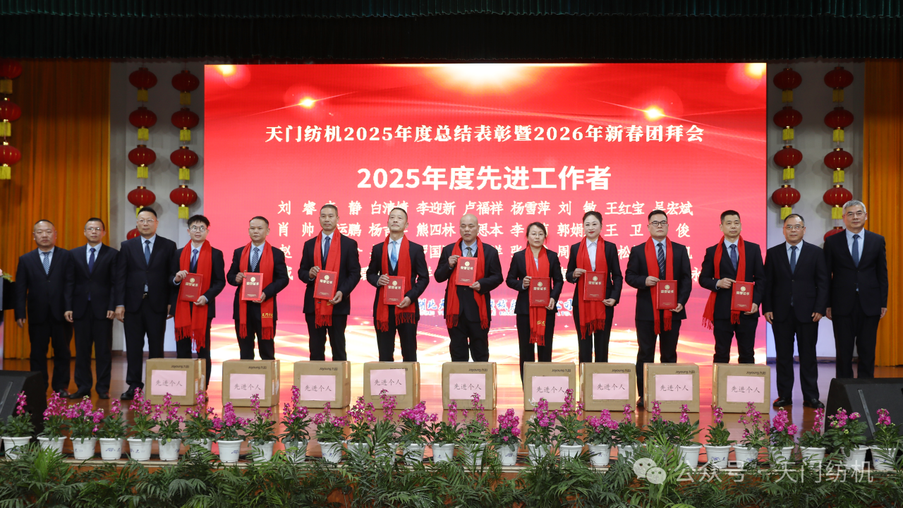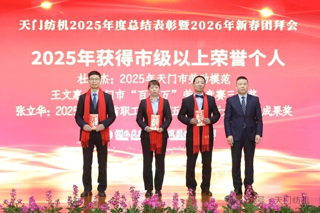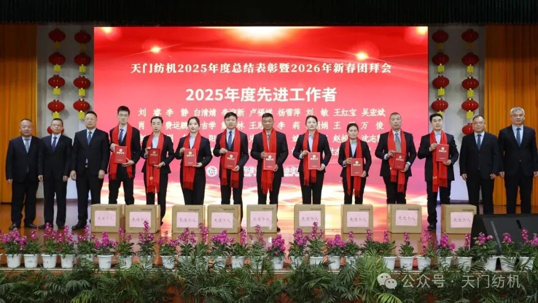 蛇隱祥云去,馬踏春風(fēng)來。2026年2月13日,天門紡機(jī)宴會(huì)廳內(nèi)歡聲笑語、喜氣盈門,2025年度總結(jié)表彰暨2026年新春團(tuán)拜會(huì)隆重舉行。特邀嘉賓、合作伙伴及全體干部員工歡聚一堂,共慶新春佳節(jié)。