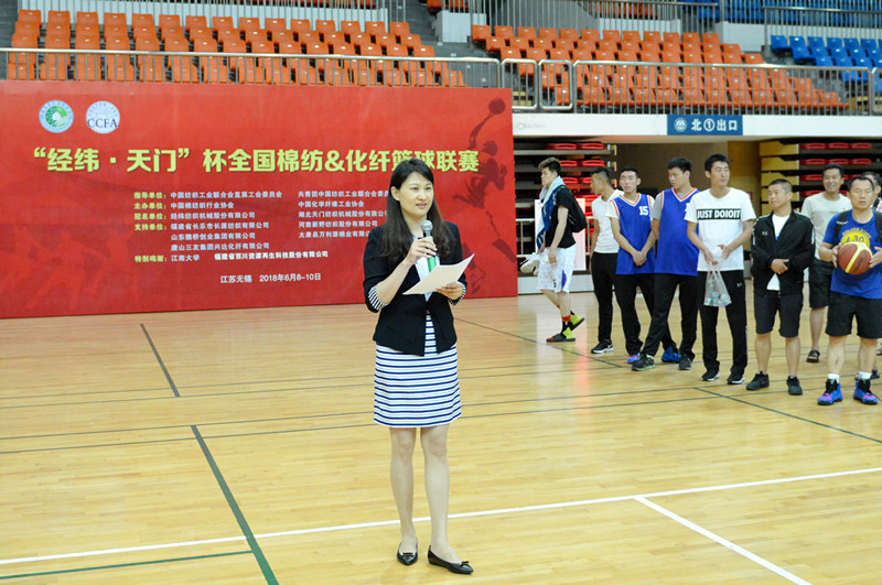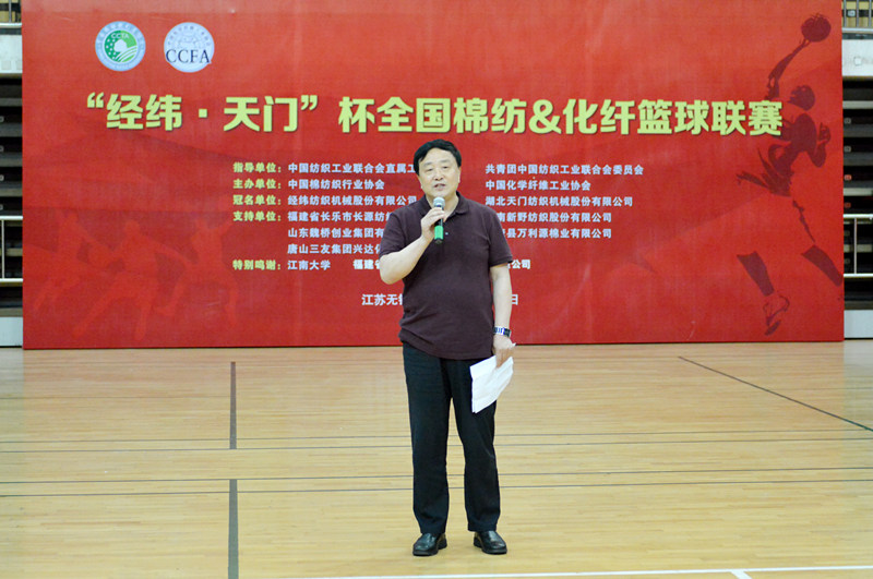 作為本次比賽的兩家冠名單位,中國紡織機械(集團)有限公司工會主席庫冠群代表經(jīng)緯紡織機械股份有限公司致辭,湖北天門紡織機械股份有限公司黨委書記魯?shù)挛脑谥罗o中表示:天門紡機應邀參加本次聯(lián)賽,并有幸成為冠名單位之一,旨在以籃球的名義為促進紡織文化的交流盡綿薄之力。