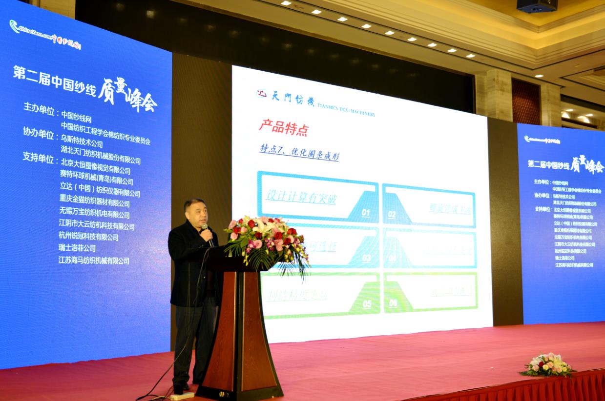 本屆峰會緊扣行業(yè)熱點(diǎn)、精心打造兩大內(nèi)容:一是關(guān)于質(zhì)量控制,圍繞當(dāng)前市場產(chǎn)品熱點(diǎn),重點(diǎn)突出專業(yè)和創(chuàng)新;二是針對棉紡企業(yè)“降低用工”的緊迫需求,有多項熱點(diǎn)創(chuàng)新技術(shù)首次在行業(yè)大會上亮相。針對企業(yè)“提升自動化和智能化、降低用工”的緊迫需求,天門紡機(jī)總經(jīng)理焦倫進(jìn)在會上作了題為《T M 系列產(chǎn)品創(chuàng)新及并條工序質(zhì)量問題探討》的專題報告,對天門紡機(jī)的系列新產(chǎn)品特性分別進(jìn)行了介紹,對當(dāng)前棉紡企業(yè)生產(chǎn)過程中碰到的一些具有代表性的問題進(jìn)行了深入簡出的解答。