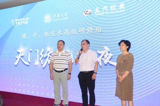 當(dāng)天晚上,學(xué)員們參加了“天門(mén)紡機(jī)之夜”晚宴,中國(guó)紗線網(wǎng)總編王果剛、江南大學(xué)謝春萍教授、湖北天門(mén)紡織機(jī)械股份有限公司品控總監(jiān)樊早斌老師為晚宴致辭。