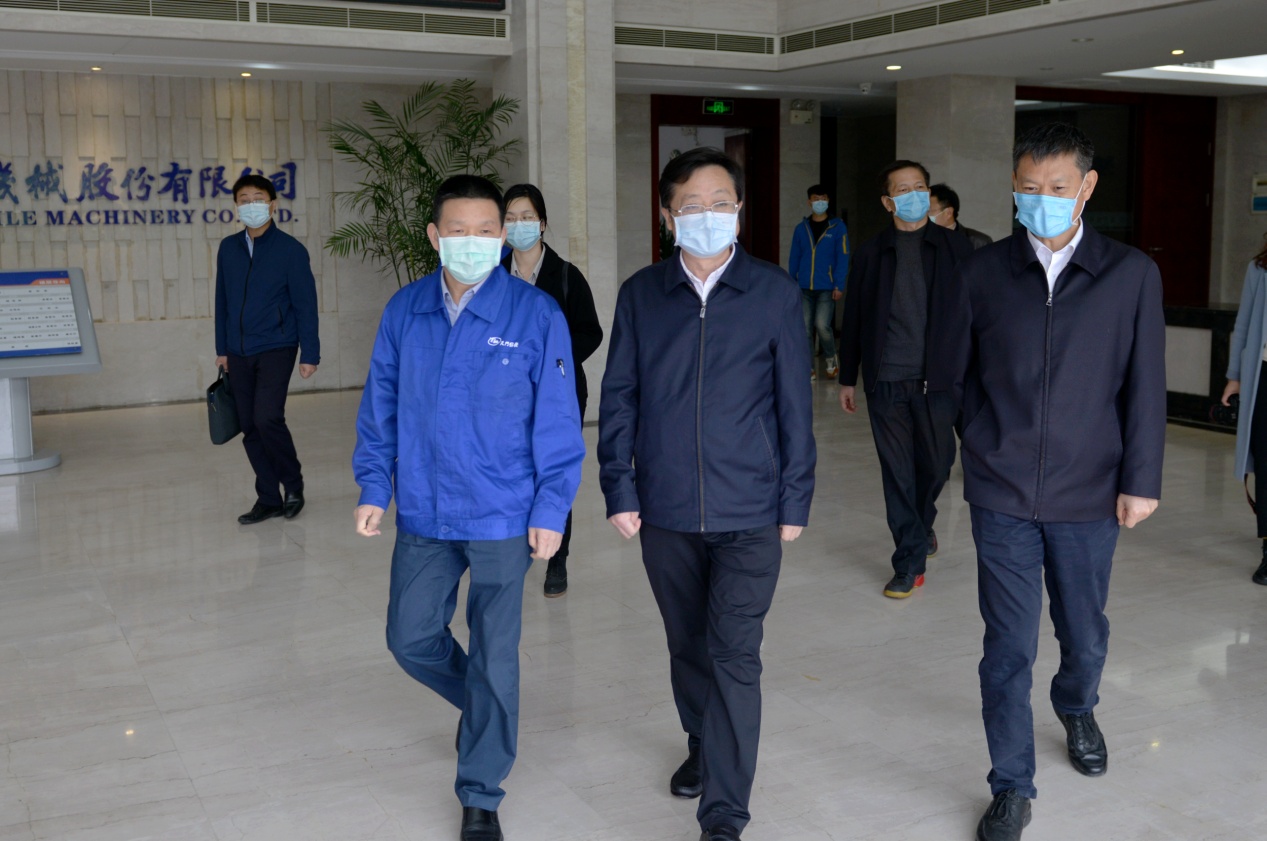 4月21日,湖北省人大常委會黨組成員、人大常委會副主任胡志強(qiáng)一行,在天門市委書記莊光明等領(lǐng)導(dǎo)的陪同下,到天門紡機(jī)調(diào)研指導(dǎo),實地了解企業(yè)防疫和復(fù)工復(fù)產(chǎn)情況。