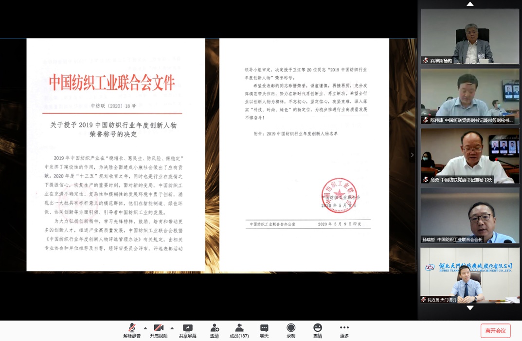 7月28日,中國紡織工業(yè)聯(lián)合會舉辦“中國紡織行業(yè)年度創(chuàng)新人物云論壇”,揭曉年度創(chuàng)新人物評選結(jié)果,沈方勇董事長在眾多參評企業(yè)家中脫穎而出,獲評“2019中國紡織行業(yè)年度創(chuàng)新人物”榮譽(yù)稱號。