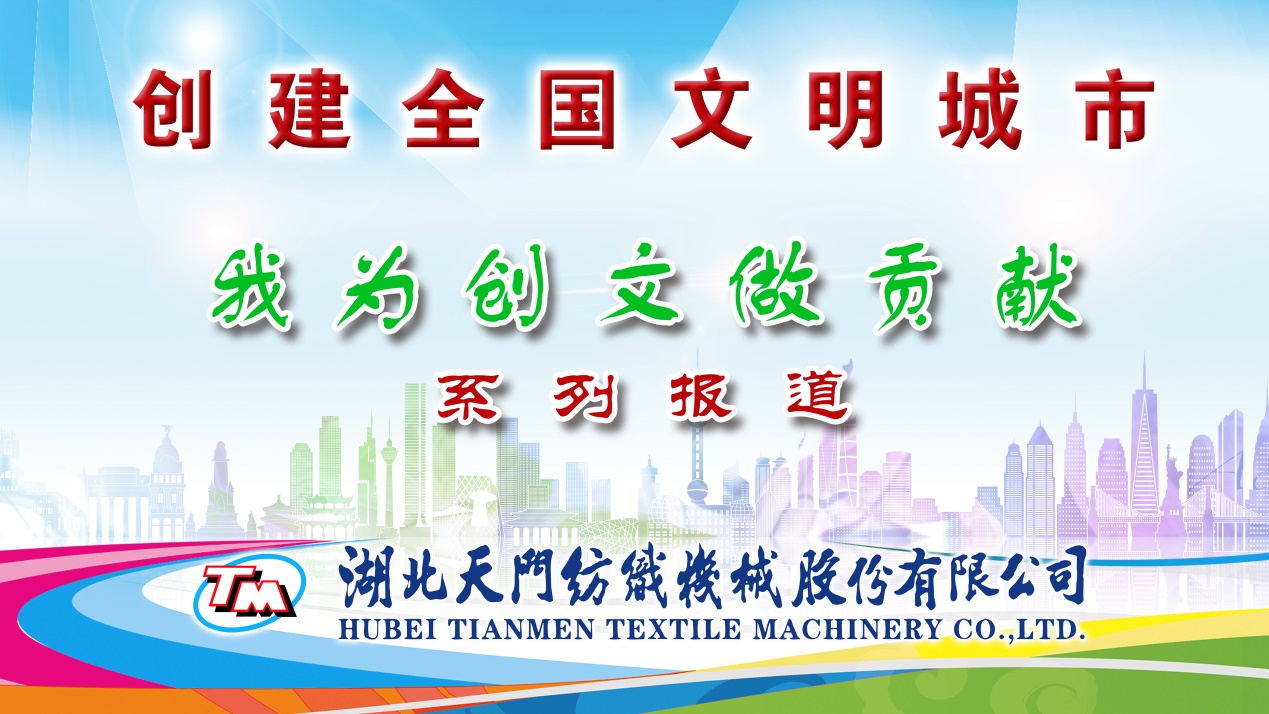 編者按:在全市上下如火如荼開(kāi)展“創(chuàng)建全國(guó)文明城市”活動(dòng)之際,天門紡機(jī)動(dòng)員全體員工開(kāi)展“我為創(chuàng)文做貢獻(xiàn)”系列活動(dòng),從廠區(qū)一角一落的環(huán)境衛(wèi)生整治,到員工的一言一行一衣,從車間里“6S”管理的推廣應(yīng)用,到對(duì)產(chǎn)品品質(zhì)的不斷改進(jìn)提升,從誠(chéng)信經(jīng)營(yíng),到客戶至上,無(wú)一不體現(xiàn)著天門紡機(jī)對(duì)文明精髓的理解、對(duì)員工文明素養(yǎng)的塑造以及發(fā)展高質(zhì)量工業(yè)文明的執(zhí)著追求。結(jié)合“我為創(chuàng)文明做貢獻(xiàn)”系列活動(dòng)的持續(xù)深入開(kāi)展,公司將對(duì)系例活動(dòng)進(jìn)行持續(xù)報(bào)道。