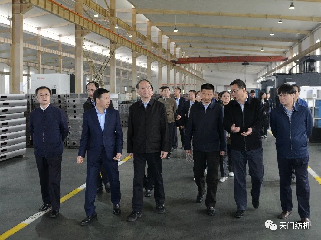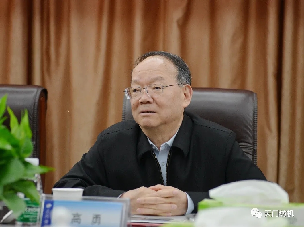 高勇書記對(duì)天門紡機(jī)的發(fā)展歷程給予了充分肯定,并希望今后堅(jiān)守并條機(jī)主業(yè),加大自主創(chuàng)新開發(fā),依托“十四五”智能制造平臺(tái),抓住機(jī)遇,作出示范,進(jìn)一步提升紡織機(jī)械智能制造水平。
