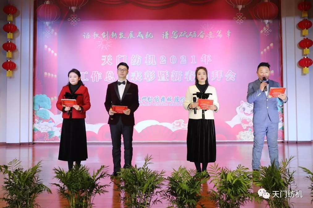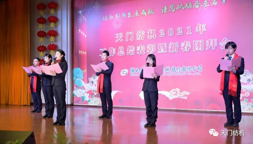 金牛奮蹄去,瑞虎踏雪來。1月29日,天門紡機(jī)的大禮堂燈光璀璨、歡聲笑語,2021年工作總結(jié)表彰暨新春團(tuán)拜會(huì)隆重舉行,全司員工歡聚一堂,共賀虎年新春。