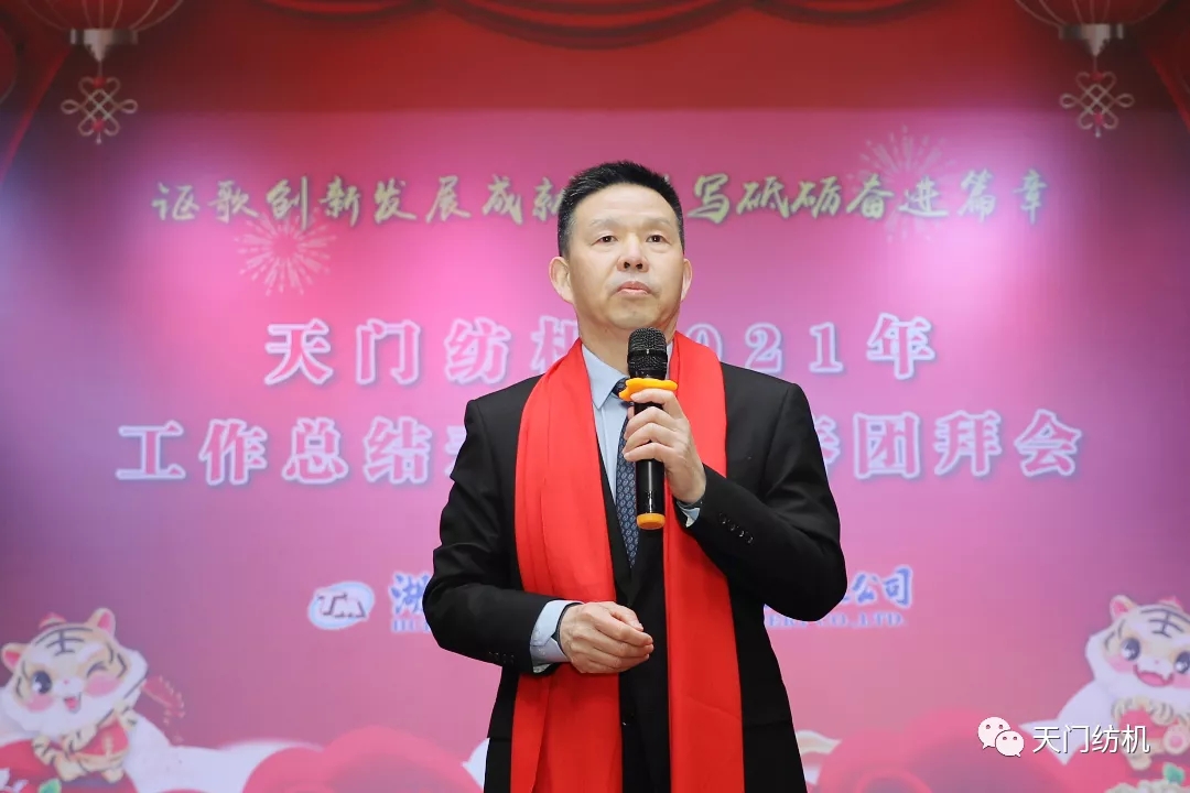 董事長(zhǎng)沈方勇致熱情洋溢的新春賀詞,他表示,天門紡機(jī)走過了激情奮斗、碩果累累、超越自我的2021年,回首“退城進(jìn)園”、轉(zhuǎn)型陣痛、市場(chǎng)洗禮、疫后重生的十年,公司“專精特新”的發(fā)展之路不曾改變,研、產(chǎn)、供、銷的“六高”閉環(huán)不曾動(dòng)搖,“單項(xiàng)冠軍產(chǎn)品”的頭銜始終沒有丟失,技術(shù)創(chuàng)新度、品牌知名度、市場(chǎng)占有率、產(chǎn)品附加值同步提升、屢攀新高。感恩偉大祖國(guó),感激業(yè)界同仁的支持信賴,感謝全體員工的團(tuán)結(jié)拼搏、風(fēng)雨同舟、辛勤付出!