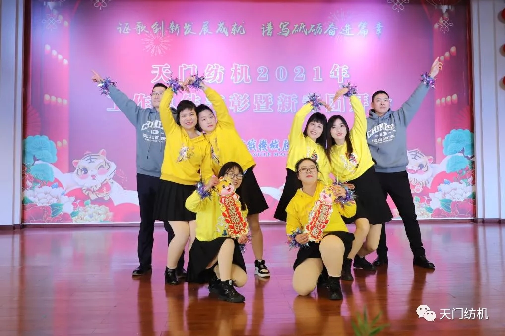 板件車間的暖場(chǎng)熱舞《秒針》,活力四射,熱烈奔放,舞出了紡機(jī)人虎虎生威的虎年激情。