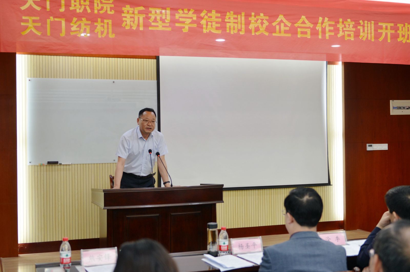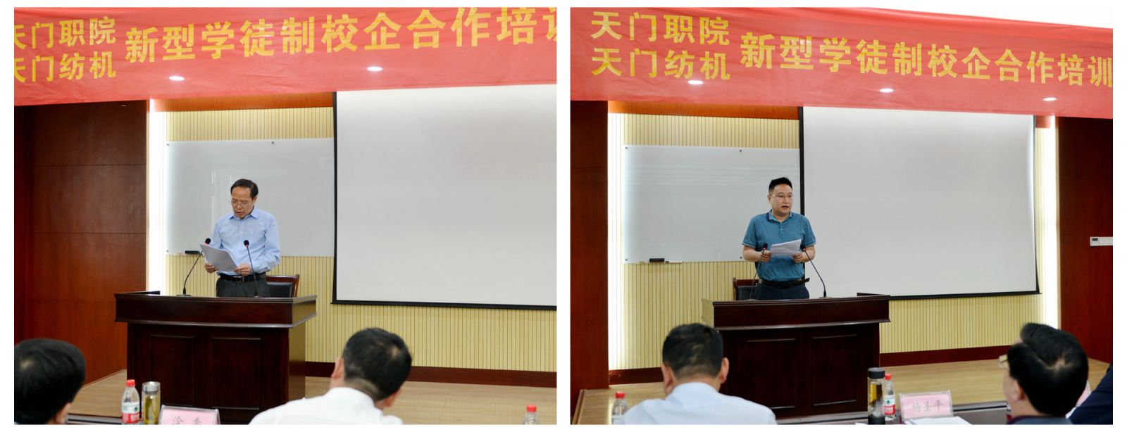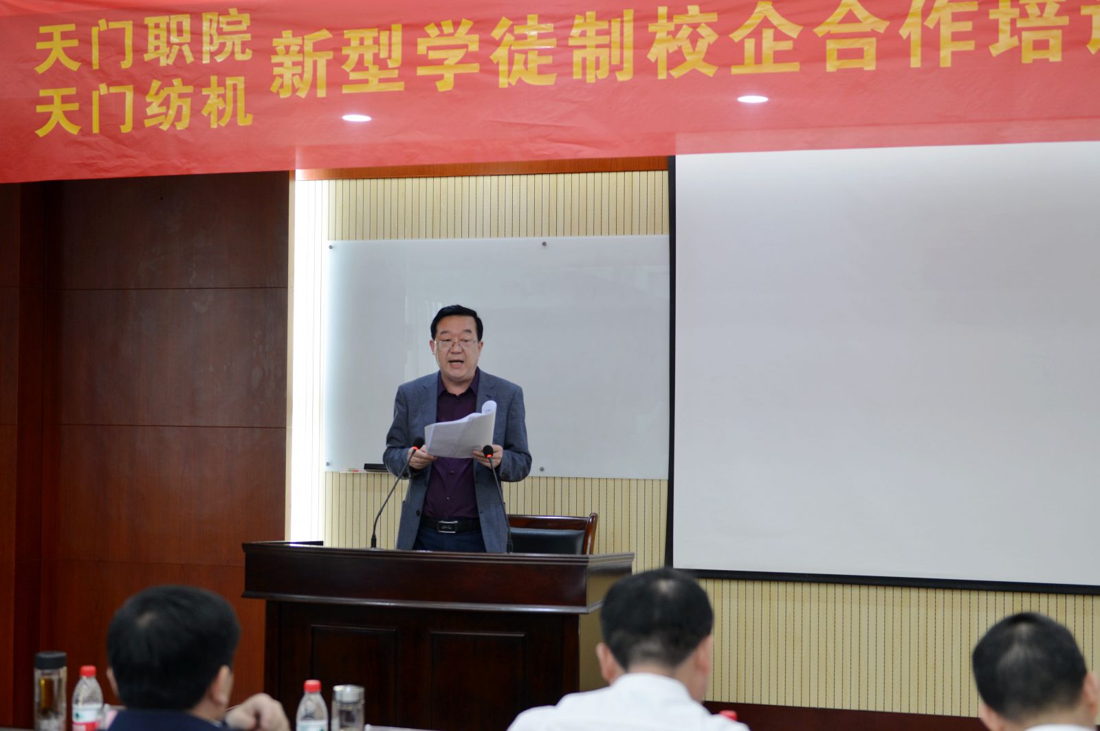 天門紡機(jī)黨委書記魯?shù)挛慕榻B了《天門職院與天門紡機(jī)新型學(xué)徒制培訓(xùn)方案》,天門職業(yè)學(xué)院教師何漢兵作了發(fā)言,他代表全體培訓(xùn)教師表態(tài),一定不負(fù)期望,精心備課,靈活施教,圓滿完成教學(xué)任務(wù)。