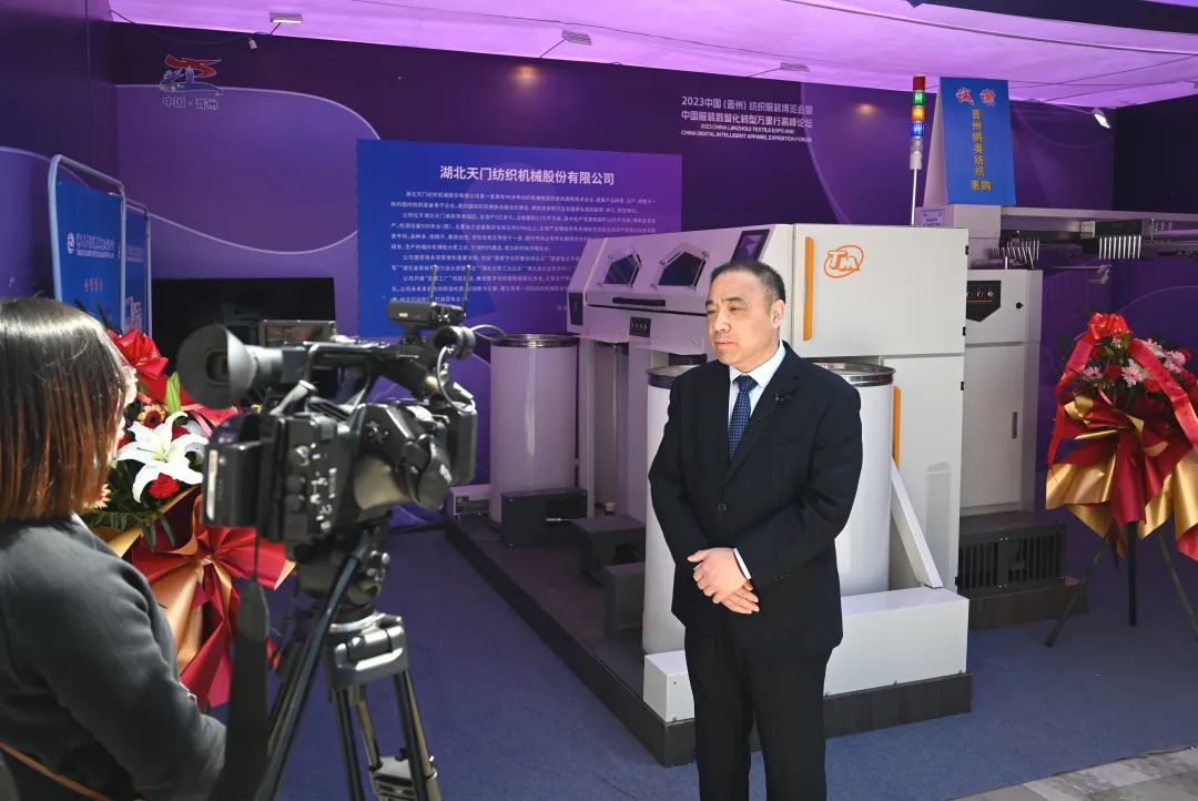 天門紡機(jī)總經(jīng)理焦倫進(jìn)接受新聞媒體采訪