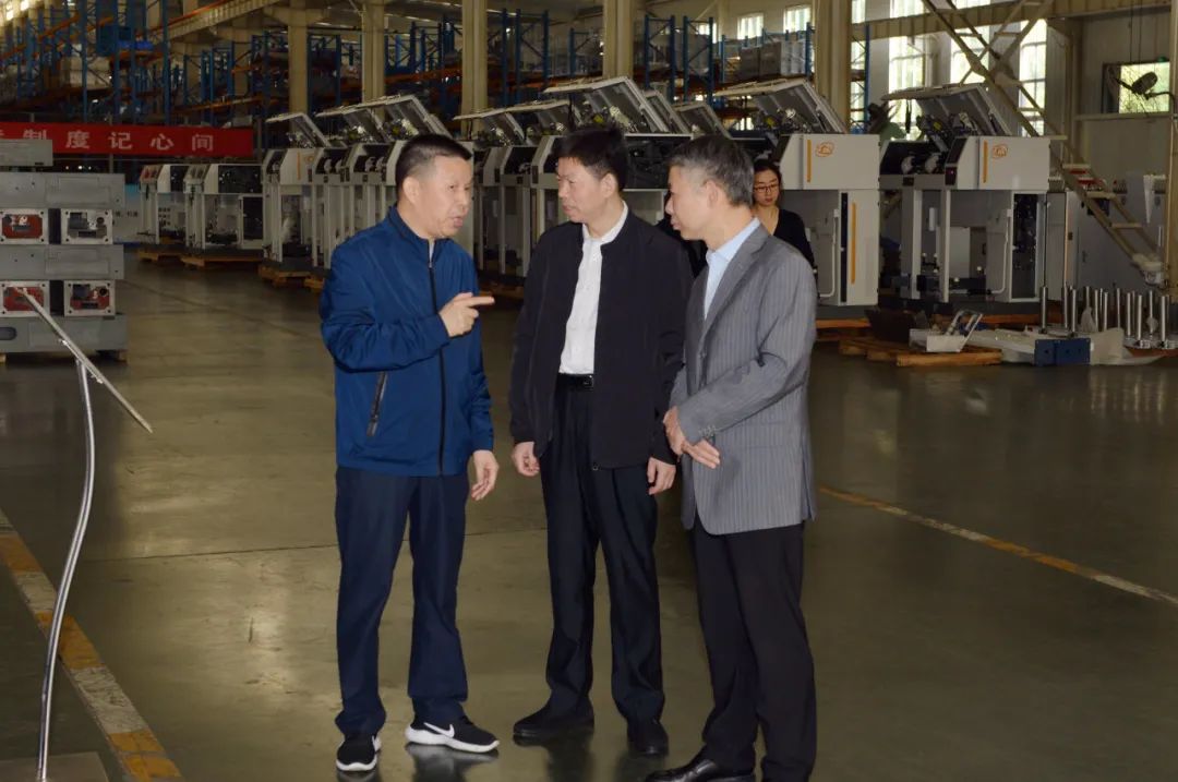 在車間現(xiàn)場,沈方勇董事長向單院長一行介紹了天門紡機(jī)目前的生產(chǎn)經(jīng)營狀況、智慧工廠項目建設(shè)進(jìn)展以及近年來科技開發(fā)取得的成績;詳細(xì)介紹了正在調(diào)試并即將赴上海參展的多臺全新樣機(jī)的情況。
