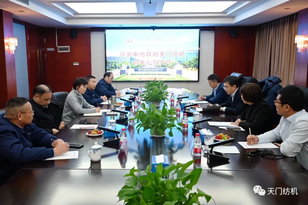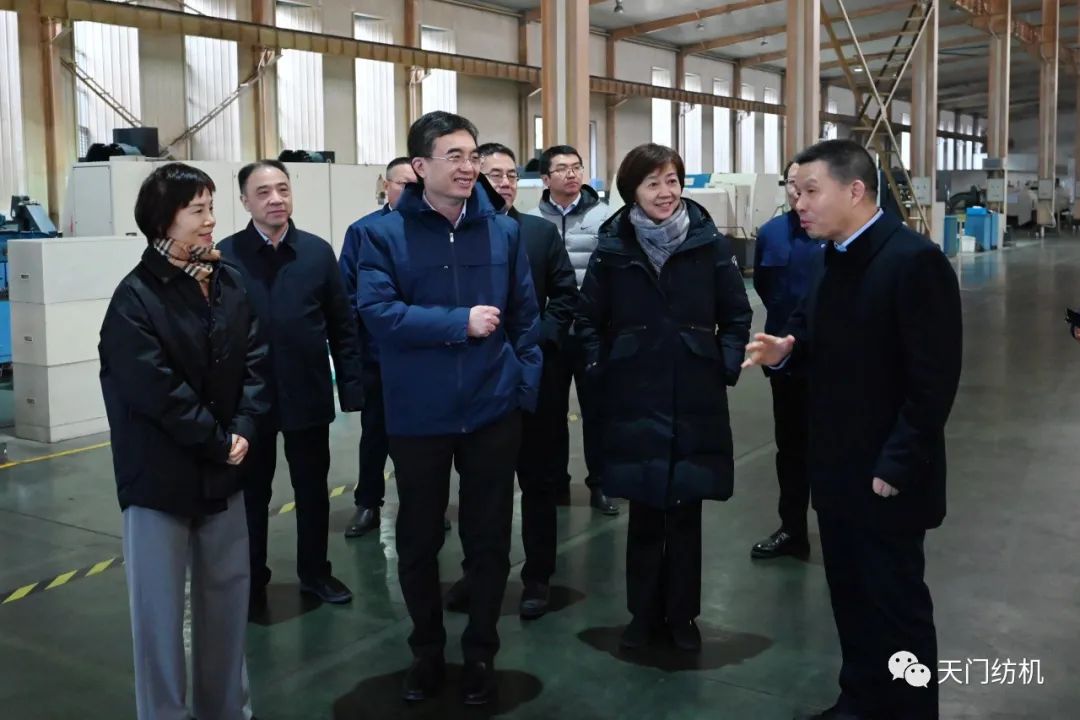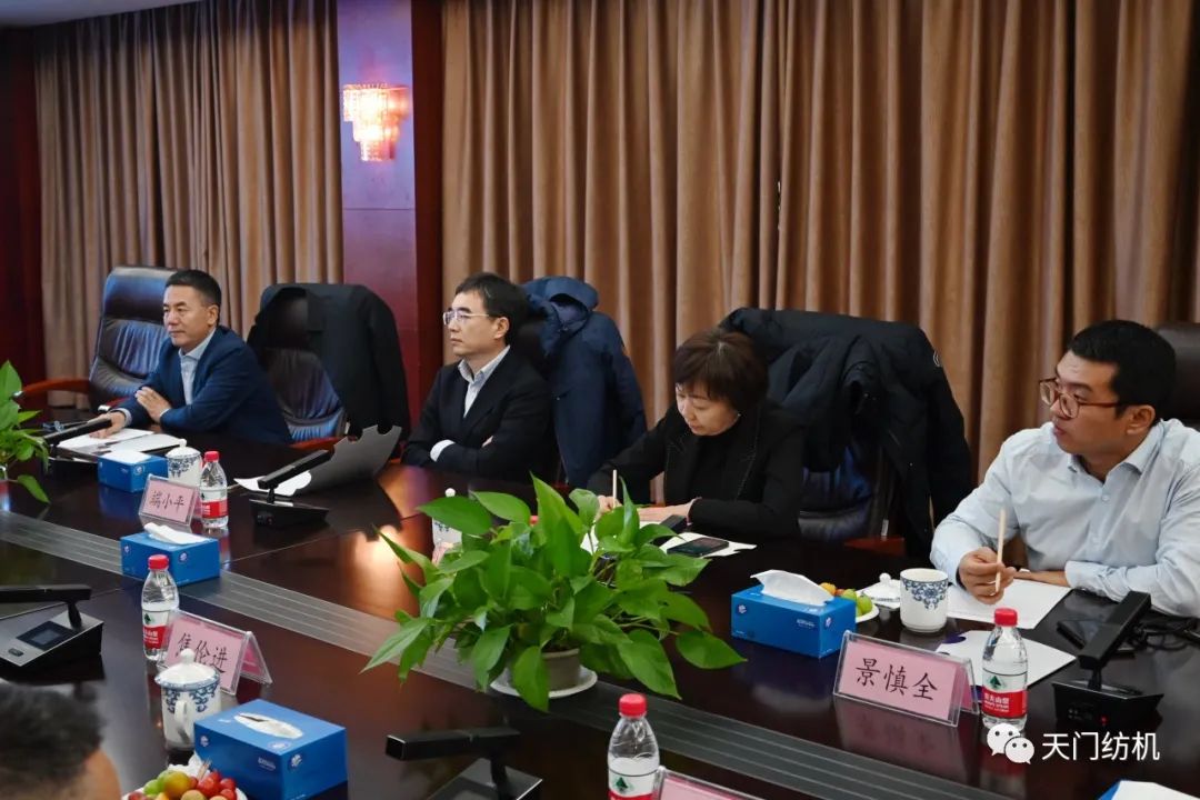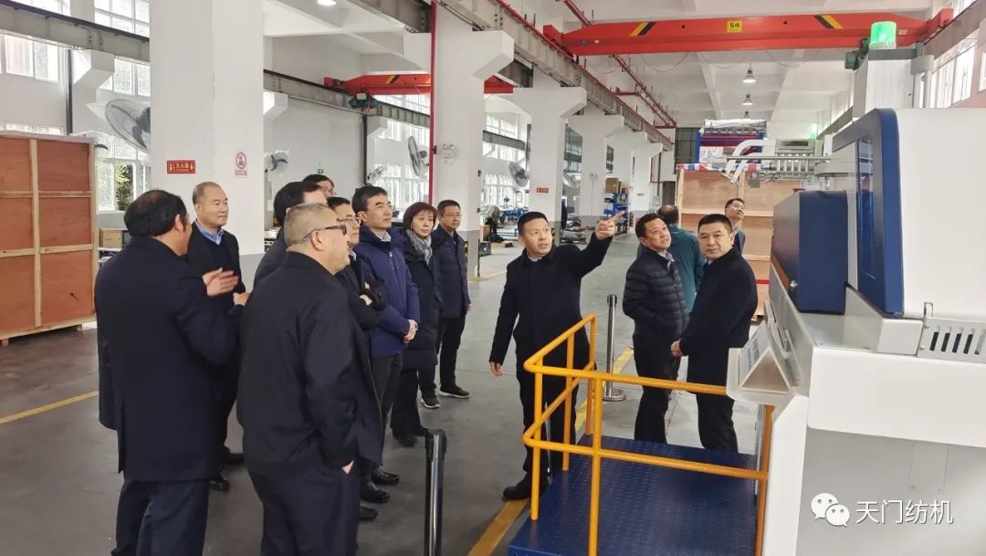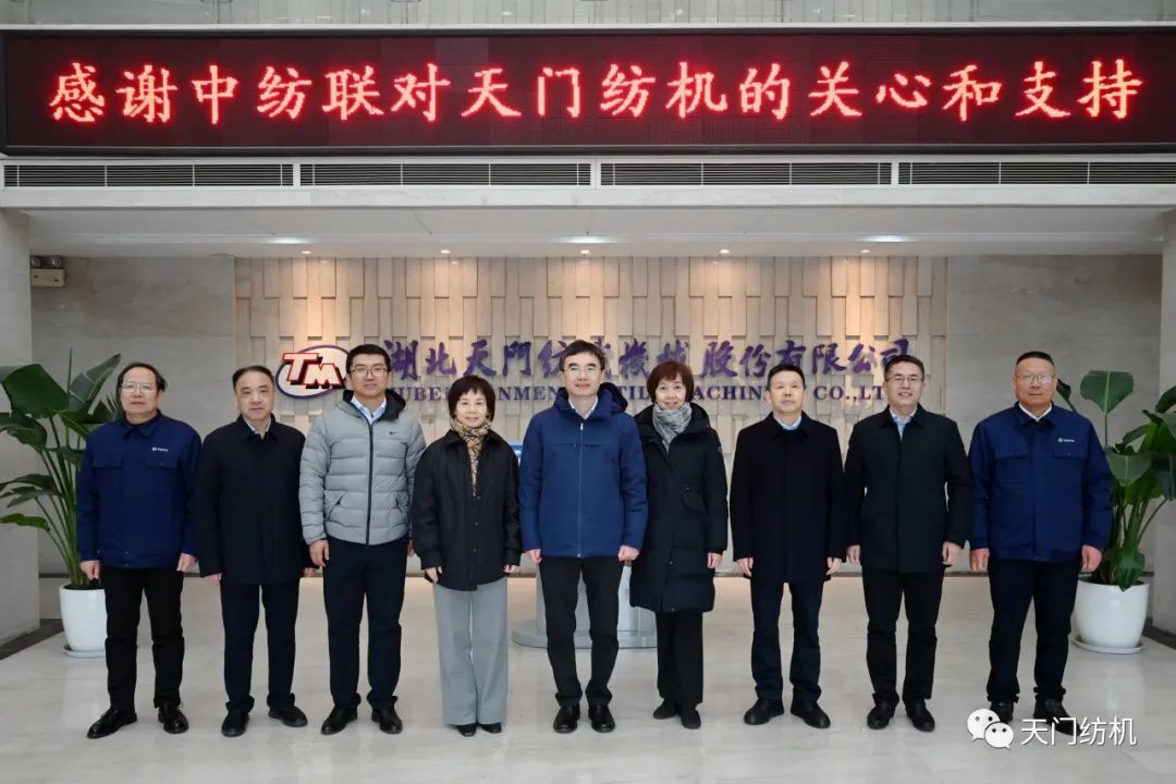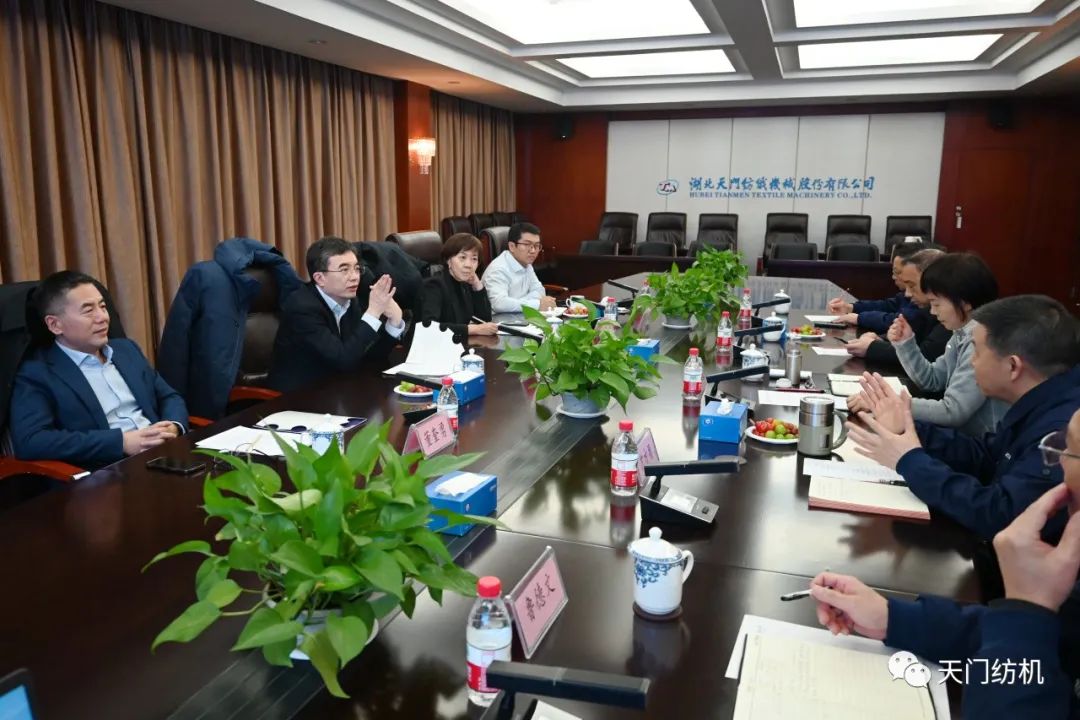 2023年12月11日,中國紡織工業(yè)聯(lián)合會副會長端小平,中國紡織工業(yè)聯(lián)合會信息中心黨委書記、社會責任辦主任閻巖,中國棉紡織行業(yè)協(xié)會會長董奎勇、副會長景慎全等領(lǐng)導專程調(diào)研天門紡機位于武漢的研發(fā)中心及天門基地。