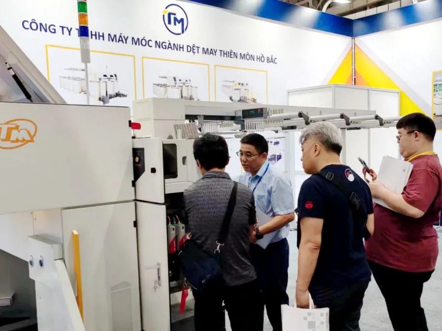 展會(huì)期間,越南PHU BAI、BROCSTEX、TPP TEXTILE、PHONG PHU、VICOTEX等多家紡織企業(yè)蒞臨天門(mén)紡機(jī)展位進(jìn)行參觀交流,對(duì)天門(mén)并條機(jī)贊許有嘉,評(píng)價(jià)其出條成形好,效率高,且性能穩(wěn)定,節(jié)能降耗。前期的一些用戶也來(lái)到現(xiàn)場(chǎng)考察,商討繼續(xù)合作的意向。
