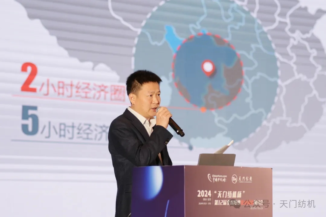 屏山縣紡織協(xié)會會長顧元德、天門紡機(jī)總經(jīng)理焦倫進(jìn)、賽特環(huán)球副總經(jīng)理郭加陽、中國紗線網(wǎng)總編王果剛先后為大會致辭。