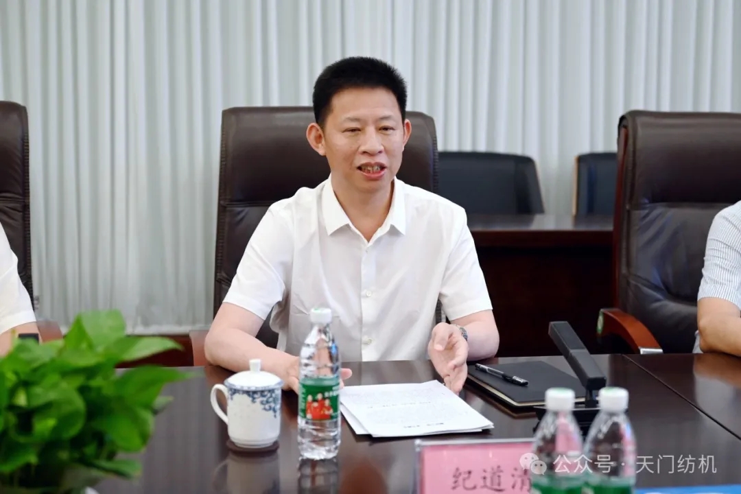 2024年8月27日,湖北省十三屆人大常委會黨組書記、副主任、十四屆全國人大代表王玲攜同十三、十四屆全國人大代表李霞,在天門市委書記、市人大常委會主任紀道清 ,市人大常委會黨組書記、副主任董清平,市委常委、秘書長高文博的陪同下調(diào)研了天門紡機及天門服裝電商產(chǎn)業(yè)園,十三屆全國人大代表、天門紡機董事長沈方勇全程陪同調(diào)研。