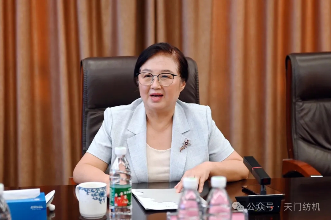 王玲主任聽完匯報后,對天門市委、政府強烈的責(zé)任擔(dān)當(dāng)、創(chuàng)新的理念思維、果敢的行動措施以及若干工作指標在全省爭先競位的優(yōu)異表現(xiàn)給予了充分肯定和贊賞,并就如何進一步做大做強服裝電商產(chǎn)業(yè)等問題,提出了“擴大全球視野、強化平臺建設(shè)、提高品牌效應(yīng)、優(yōu)化協(xié)作機制、整合社會資源”等方面的意見和建議。王玲主任在肯定天門紡機面對機遇挑戰(zhàn)取得良好經(jīng)營業(yè)績的同時,對沈方勇董事長給予了很高的評價。她強調(diào),沈方勇同志身為十三屆全國人大代表和中國紡機協(xié)會副會長,有很強的社會責(zé)任感和民族工業(yè)情懷,有不斷創(chuàng)新的發(fā)展理念與思維,有優(yōu)秀的個人品質(zhì)和意志力。他幾十年如一日心無旁騖,堅守實業(yè),堅持紡織機械主業(yè),將傳統(tǒng)產(chǎn)業(yè)打造成具有國際競爭力和影響力的明星企業(yè),成為地方的一張名片和行業(yè)的一面旗幟。她希望天門紡機在沈方勇同志的帶領(lǐng)下,積極響應(yīng)黨中央、國務(wù)院關(guān)于推動“兩新”的號召,抓住國家新一輪經(jīng)濟增長的契機,促進更快更好地發(fā)展,為地方經(jīng)濟和行業(yè)高質(zhì)量發(fā)展作出更大貢獻。