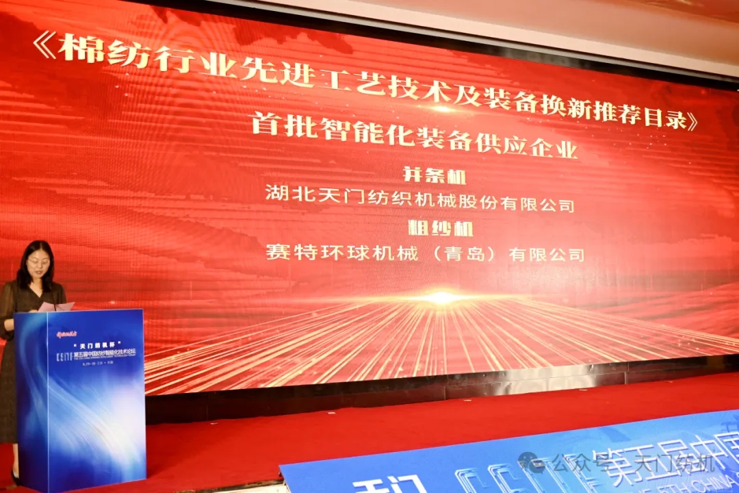 天門紡機系列并條機獲得“棉紡行業(yè)先進工藝技術(shù)及裝備換新推薦”