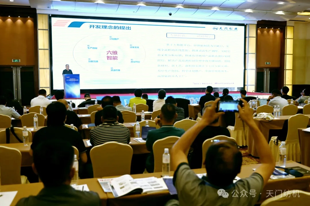 在技術(shù)交流環(huán)節(jié)中,天門紡機品控總監(jiān)樊早斌作了題為《六維智能開創(chuàng)并條產(chǎn)線聯(lián)動新時代》的主旨報告。他深入闡述了產(chǎn)線聯(lián)動的理念、研發(fā)背景和思路,詳實介紹了基于六維智能的并條創(chuàng)新技術(shù)以及產(chǎn)線聯(lián)動的實踐應(yīng)用與開發(fā)進程。他強調(diào),“六維智能”開發(fā)理念的提出是基于大數(shù)據(jù)平臺,其創(chuàng)新點就是以智能制造為突破口,實現(xiàn)全流程的在線監(jiān)控、快速靈活生產(chǎn)調(diào)度、實時信息采集分析反饋,快速有效地對產(chǎn)品狀態(tài)進行實時跟蹤,解決產(chǎn)品追溯控制管理中的關(guān)鍵問題;利用新材料、新工藝、新科技實現(xiàn)上下工序互聯(lián)互通,有序生產(chǎn)協(xié)同,科學(xué)計劃排產(chǎn),全面實現(xiàn)低成本、高智能的無人工廠。