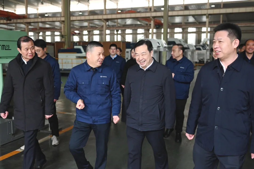 2025年3月4日上午,湖北省經(jīng)信廳黨組書(shū)記、廳長(zhǎng)汪元程,總工程師盛章學(xué),經(jīng)濟(jì)運(yùn)行處處長(zhǎng)王雋,裝備工業(yè)處處長(zhǎng)王瓊,原材料工業(yè)處處長(zhǎng)鄧忠明,綜合處二級(jí)主任科員李雷等一行到天門(mén)紡機(jī)調(diào)研。天門(mén)市委書(shū)記、市人大常委會(huì)主任紀(jì)道清,天門(mén)市委副書(shū)記、市長(zhǎng)肖敏,天門(mén)市委常委、副市長(zhǎng)曾令慧,天門(mén)市委常委、秘書(shū)長(zhǎng)高文博等市領(lǐng)導(dǎo)及天門(mén)市經(jīng)信局黨組書(shū)記、局長(zhǎng)陳明敏等部門(mén)負(fù)責(zé)人全程陪同調(diào)研。