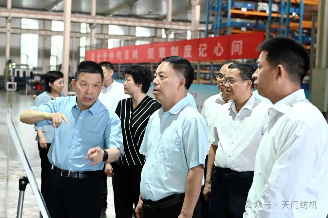 2025年5月22日下午,湖北省人大常委會(huì)副主任楊云彥,省人大常委會(huì)委員、民宗僑外委主任委員陳亮,省人大常委會(huì)副秘書長陳少敏,省人大民宗僑外委專職副主任委員劉玉坤,省人大民宗僑外委辦公室主任彭細(xì)元,省人大民宗僑外委辦公室副主任馮吉等一行,深入天門紡機(jī)開展專題調(diào)研。天門市委書記、市人大常委會(huì)主任紀(jì)道清,市人大常委會(huì)黨組副書記、副主任蔣勝雄,市人大常委會(huì)黨組成員、副主任張文輝,市人大常委會(huì)黨組成員、秘書長龔賢俊,市人大常委會(huì)教僑工委主任陳新華、侯口街道辦事處黨工委書記劉娟等領(lǐng)導(dǎo)陪同調(diào)研。天門紡機(jī)董事長沈方勇全程接待,匯報(bào)工作。