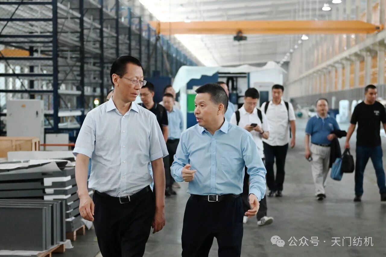 2025年9月27日,卓郎智能技術股份有限公司董事長潘雪平一行7人蒞臨天門紡機參觀交流,公司董事長沈方勇予以熱情接待。雙方圍繞紡織行業(yè)發(fā)展形勢及合作項目等議題進行了深入交流。