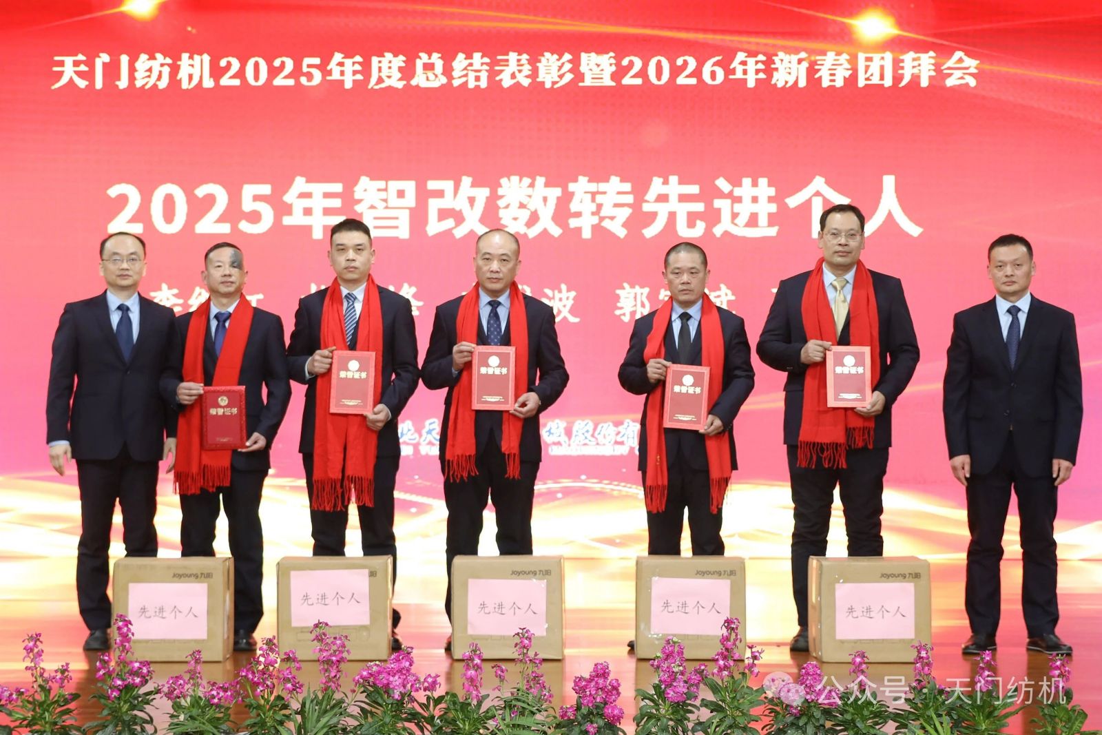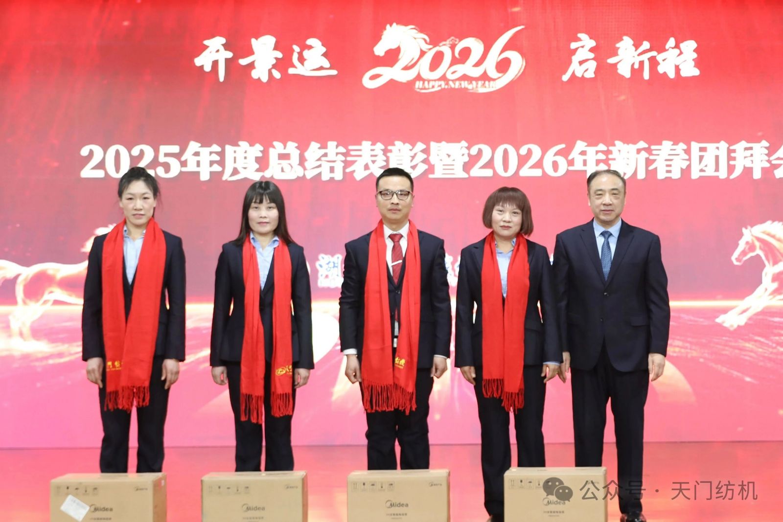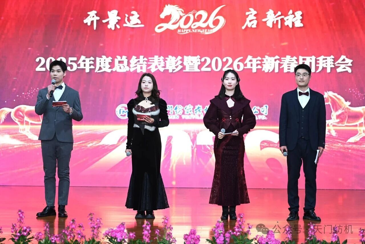 蛇隱祥云去,馬踏春風(fēng)來。2026年2月13日,天門紡機(jī)宴會(huì)廳內(nèi)歡聲笑語、喜氣盈門,2025年度總結(jié)表彰暨2026年新春團(tuán)拜會(huì)隆重舉行。特邀嘉賓、合作伙伴及全體干部員工歡聚一堂,共慶新春佳節(jié)。